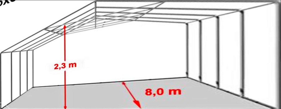 Party overkapping, 5 x 8 mtr. wit (zelfbouw) incl. zijwanden